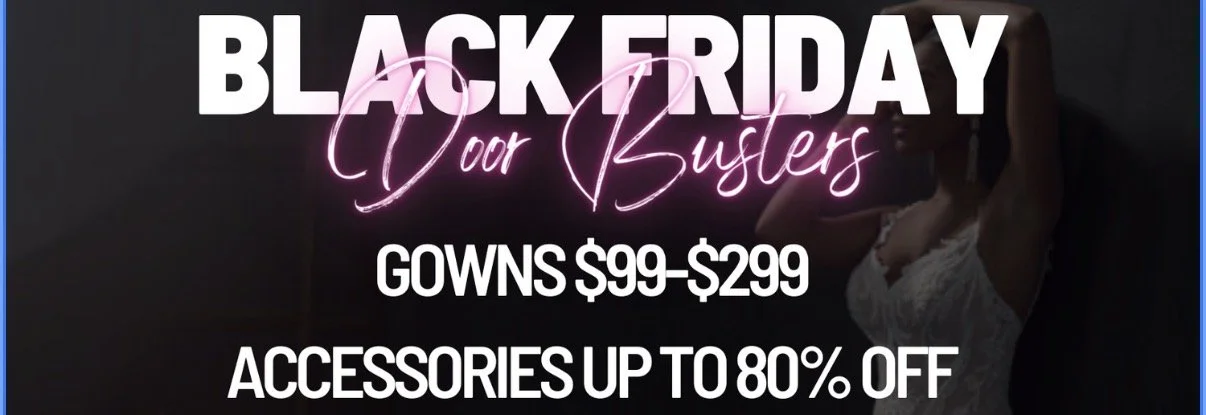 Join us for our Black Friday DOOR BUSTER event! For 2 hours only, we will only be working by walk-ins from 10am-12pm. First come, first served on some crazy deals! Veils are marked up to 80% off, headpieces marked down to $29!