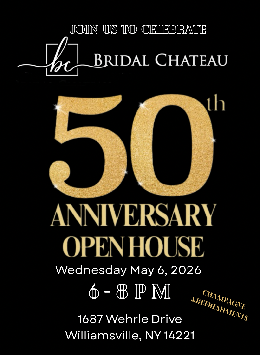 Join us Wednesday, May 6th from 6–8pm for an evening of celebration, connection, and a little bit of sparkle as we honor another incredible year at Bridal Chateau. 💕